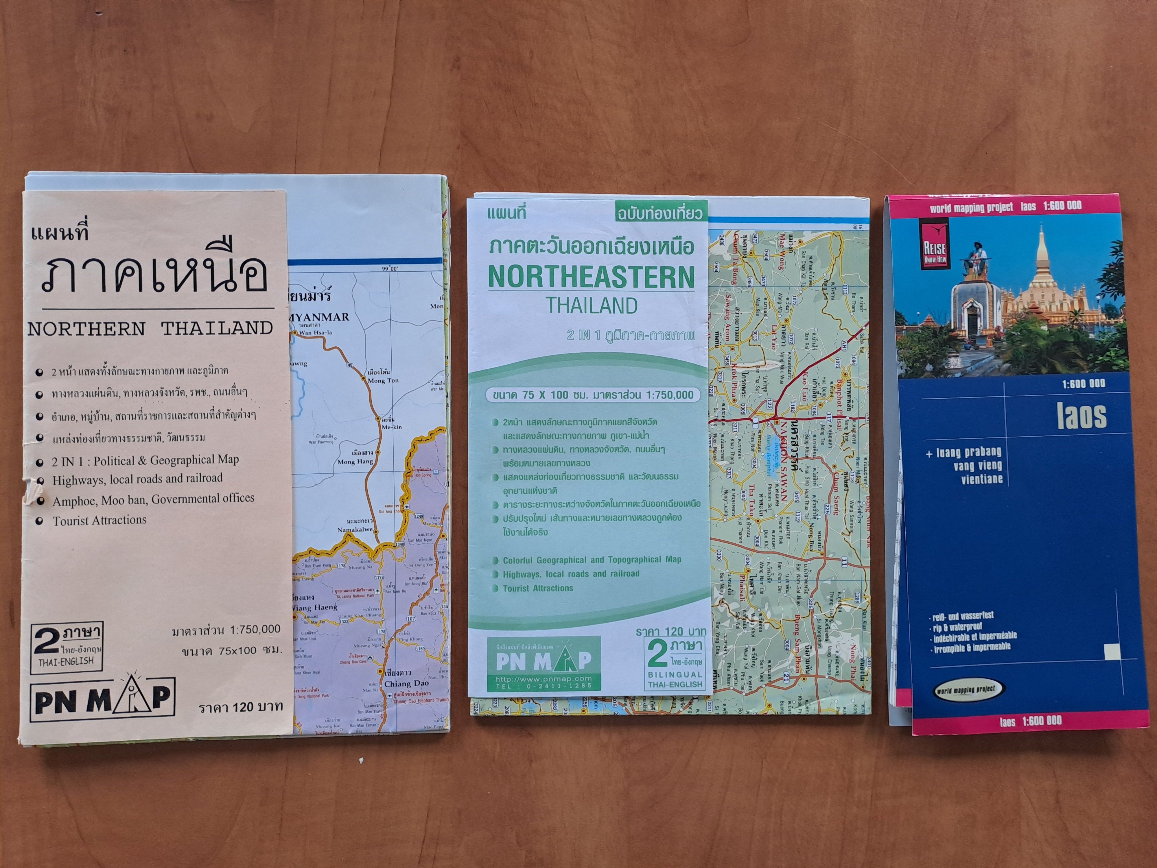 Tegen verzendkosten of op te halen: 2 landkaarten (Noord) Thailand en 1 Laos.